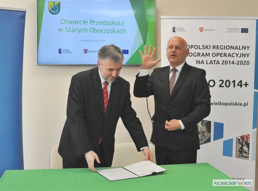W oficjalnym otwarciu uczestniczyli m.in. marszałek województwa Marek Woźniak, poseł Wojciech Ziemniak, władze samorządowe miast, gmin i powiatu kościańskiego, dyrektorzy placówek oświatowych z gminy Kościan. Nowy obiekt poświęcił ks. Wojciech Słomiński, proboszcz ze Starych Oborzysk.