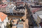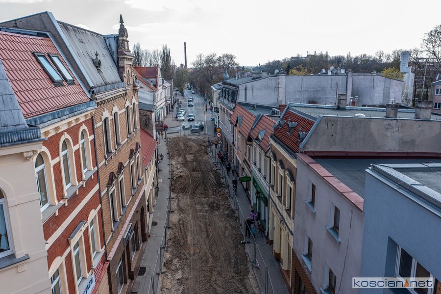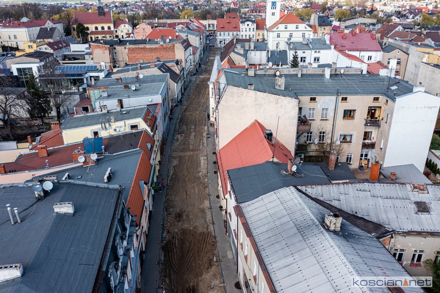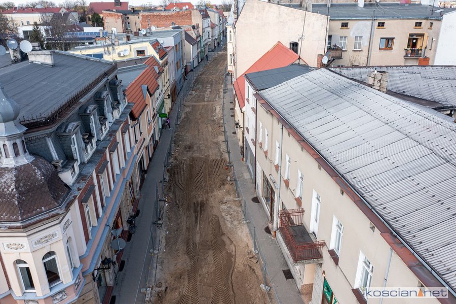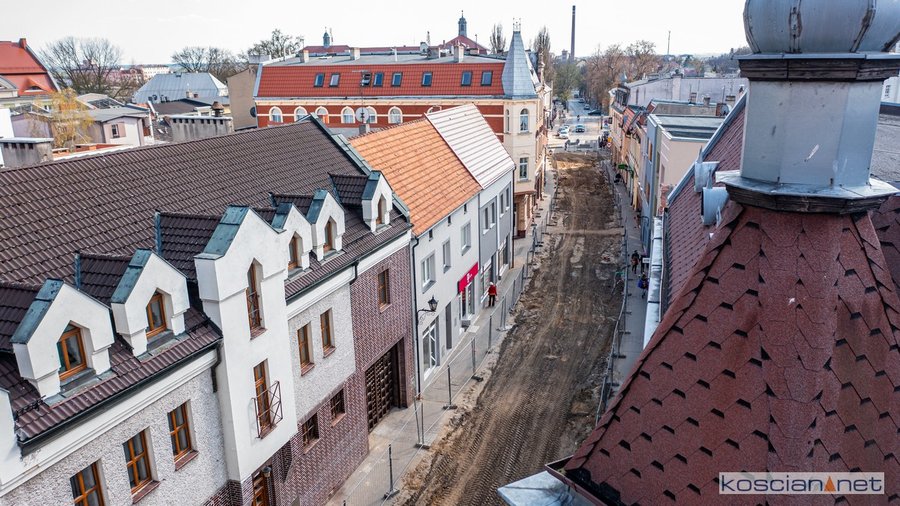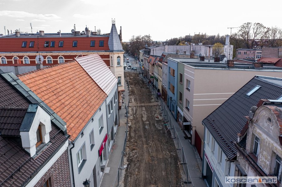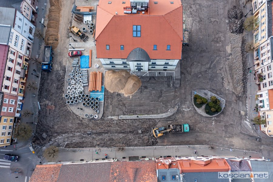 Jak widać na zdjęciach z drona z całej płyty Rynku usunięto asfalt, a z części także zalegającą pod nim kostkę brukową. Po wymianie podziemnej infrastruktury plac zostanie wyłożony granitową nawierzchnią. Rewitalizacja Rynku i ulicy Wrocławskiej ma się zakończyć w czwartym kwartale bieżącego roku.