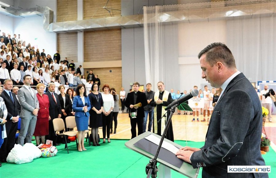- Dzisiejszy dzień jest dniem wyjątkowym dla samorządów Powiatu Kościańskiego oraz Miasta Kościana, ale również dla całej społeczności Zespołu Szkół Ponadgimnazjalnych im. Franciszka Ratajczaka oraz mieszkańców miasta i powiatu. Otwieramy dziś największą i najważniejszą inwestycję ostatnich lat, piękną i nowoczesną halę sportowo – widowiskową – powiedział Starosta Kościański Bernard Turski, witając gości zaproszonych na oficjalną uroczystość.