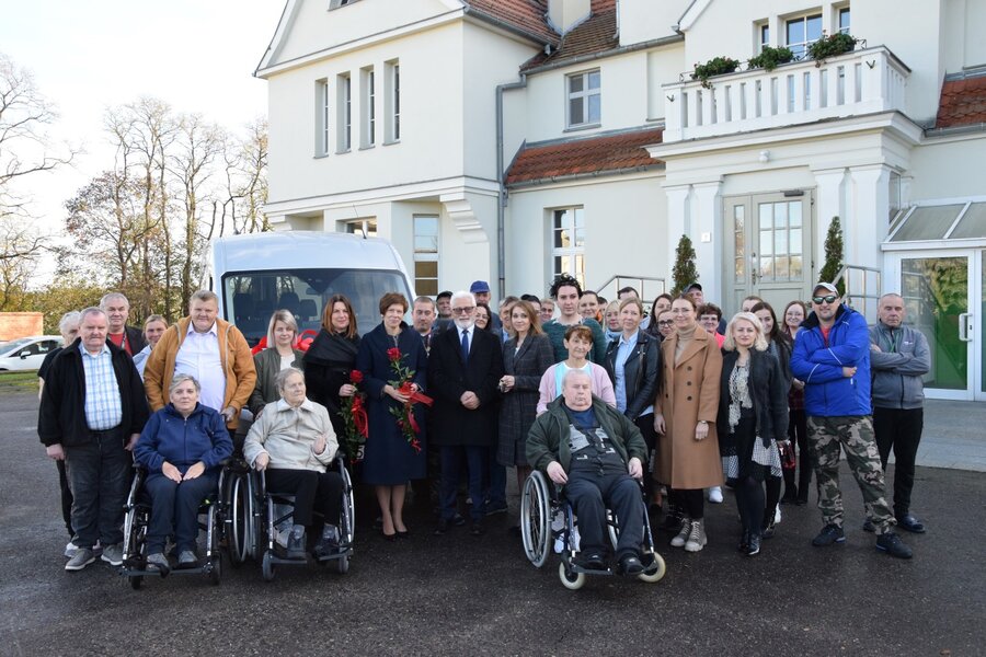 We wtorek, 8 listopada, w Domu Pomocy Społecznej w Mościszkach odbyła się uroczystość przekazania mieszkańcom nowego samochodu. To dziewięciomiejscowe auto przystosowane do przewozu osób na wózkach inwalidzkich.