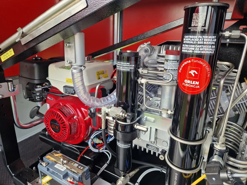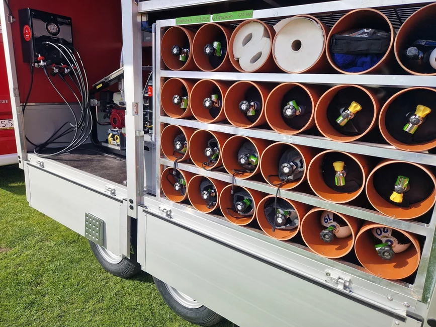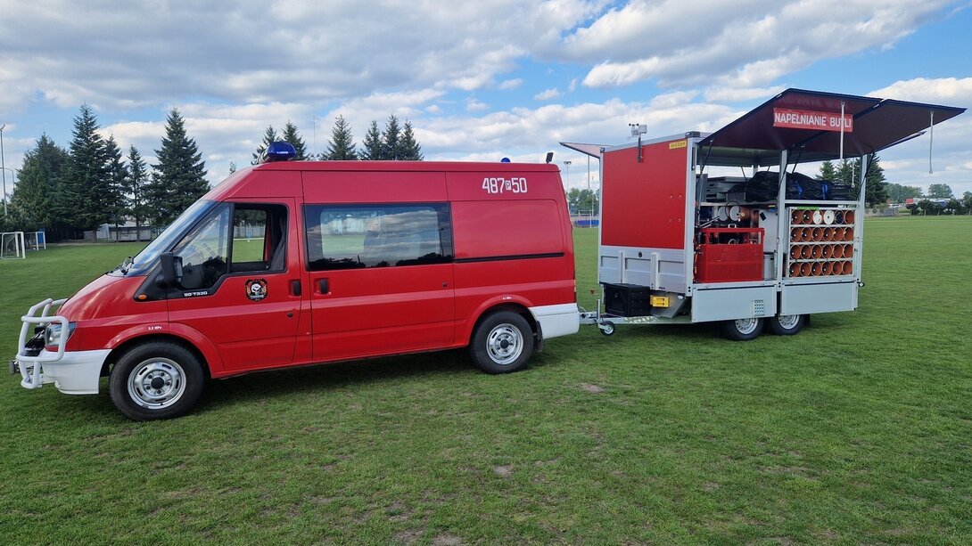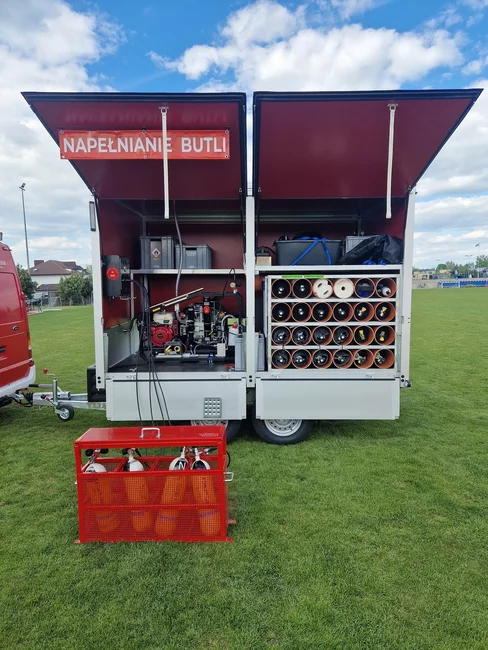 Przyczepa wyposażona jest w sprężarkę spalinową, panel napełniającym jednocześnie cztery butle i zapas butli kompozytowych i stalowych. Zestaw uzupełnia stacja meteorologiczna, myjka wysokociśnieniowa, namiot pneumatyczny, stoły, ławki i oświetlenie.