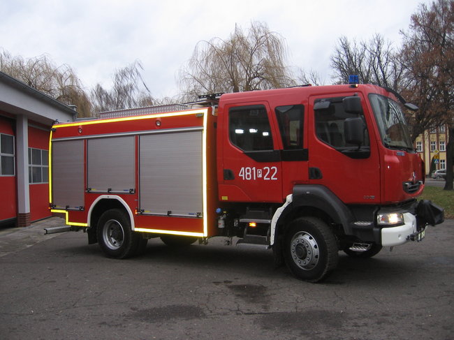 Państwowa Straż Pożarna w Kościanie otrzymała nowy średni samochód gaśniczy na podwoziu renault. Auto charakteryzuje się między innymi podwoziem i układem napędowym dostosowanym do jazdy w terenie.