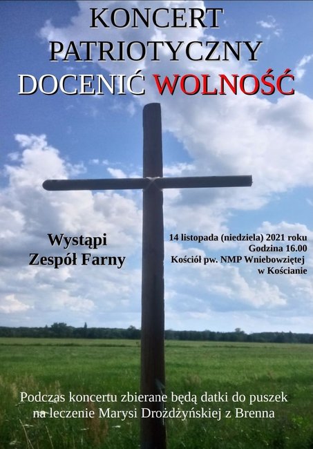 14 listopada (niedziela) koncert patriotyczny w kościele farnym pn. "Docenić wolność".