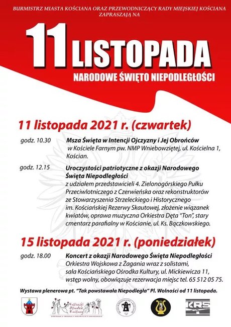 Program obchodów Narodowego Święta Niepodległości w gminach powiatu kościańskiego.
