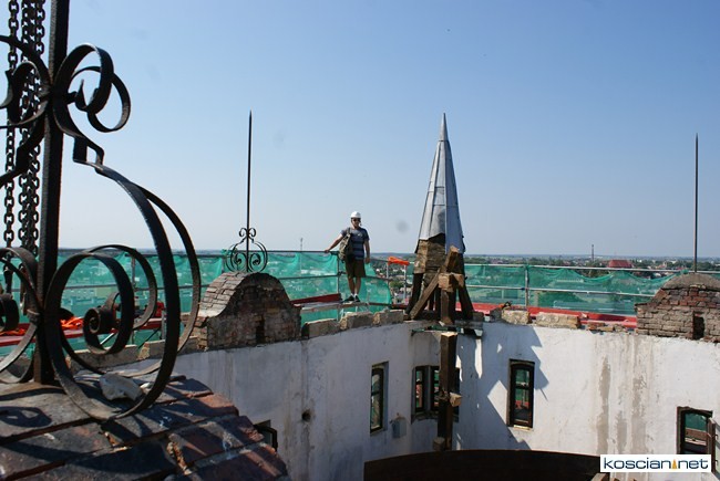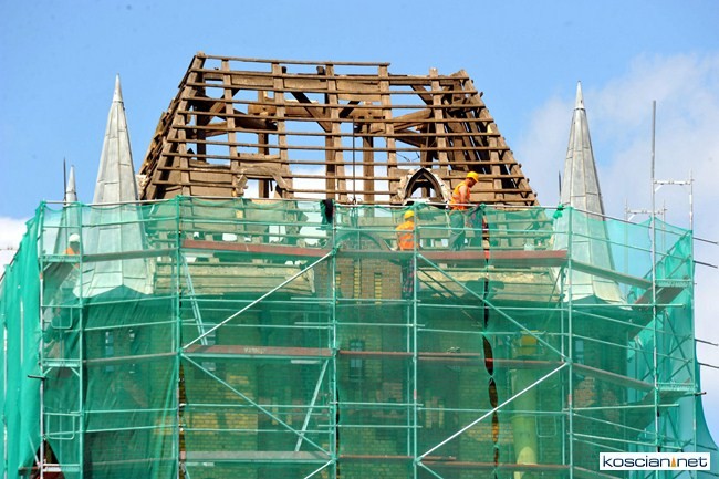 Oglądając pozbawioną dachu wieże wydaje się, że dotrzymanie wrześniowego terminu zakończenia prac jest tak samo prawdopodobne jak jego kolejne przełożenie. Przed inwestorem ostatni z dużych przetargów i montaż obrotowego dachu, który ku utrapieniu konstruktorów nie jest kopułą, lecz pokrytym dachówką czteropołaciowym dachem namiotowym. (s)