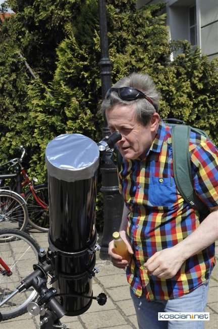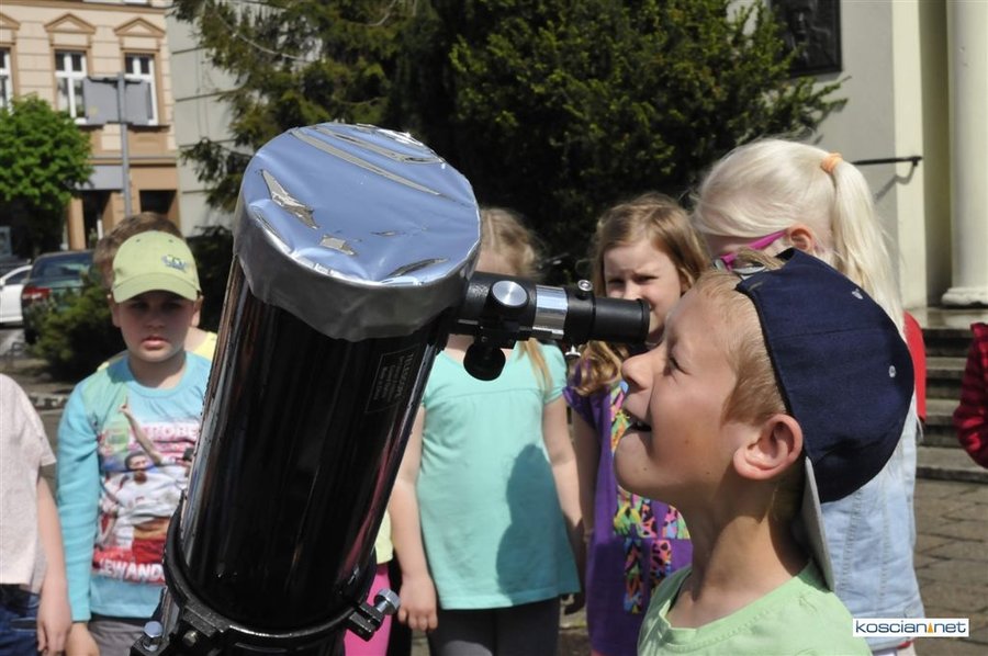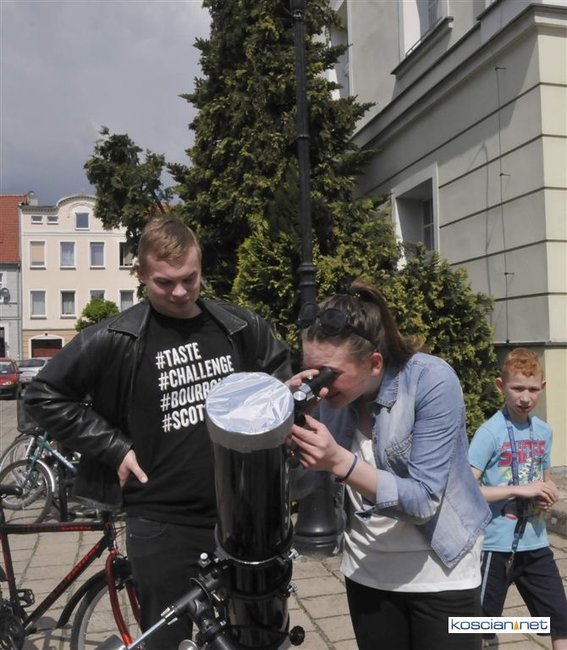 Przez ustawiony na kościańskim Rynku teleskop można było obserwować przejście Merkurego przez tarczę Słońca.