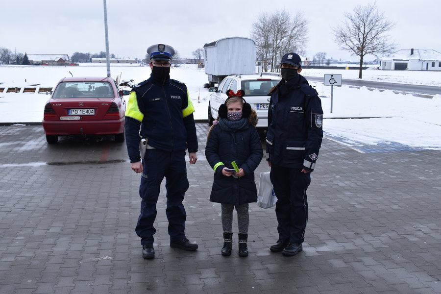 Funkcjonariusze ruchu drogowego i prewencji w miniony piątek, 15 stycznia, prowadzili działania edukacyjno-profilaktyczne m.in.: na ul. Młynskiej w Kościanie, na ścieżkach pieszo-rowerowych w kierunku Starych Oborzysk oraz Racotu.