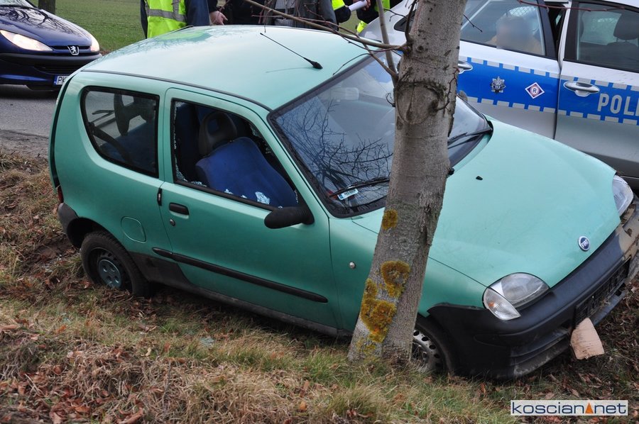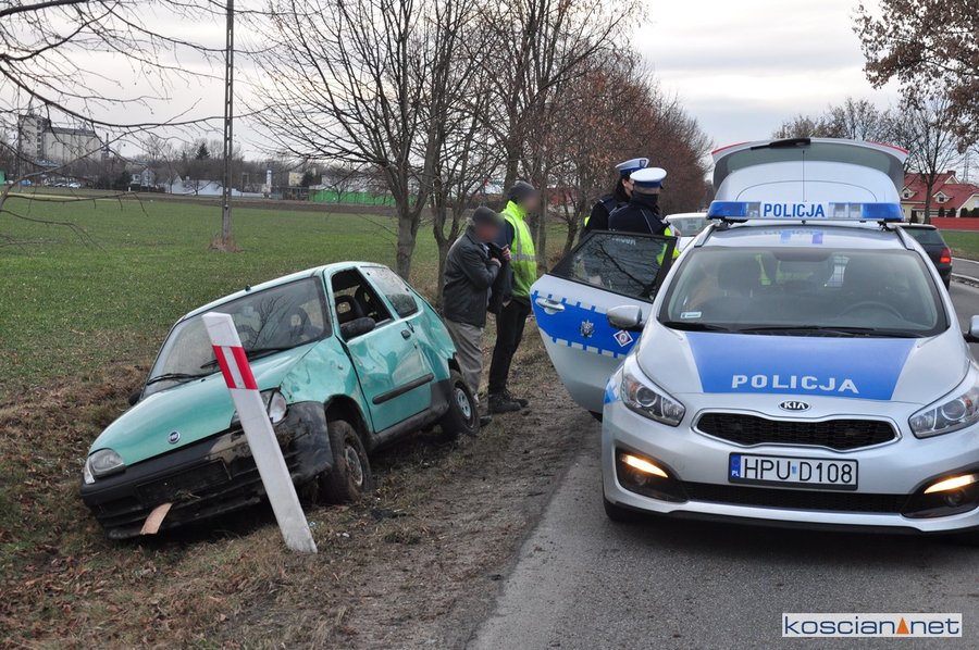 Do zdarzenia doszło w piątek, 19 lutego, około godziny 16., na drodze z Kościana do Nowego Lubosza. Jadący fiatem w kierunku Lubosza 47-latek stracił panowanie nad samochodem i zjechał do przydrożnego rowu. Przybyła na miejsce policja ustaliła, że kierowca był pijany. Badanie trzeźwości wykazało 1,2 promila alkoholu w organizmie mężczyzny.