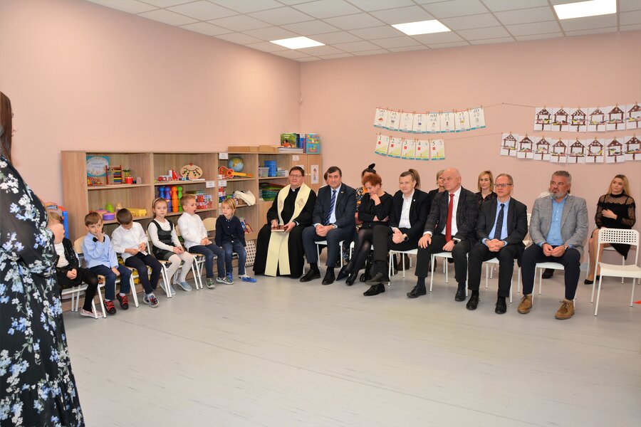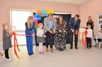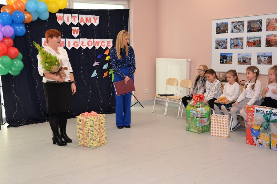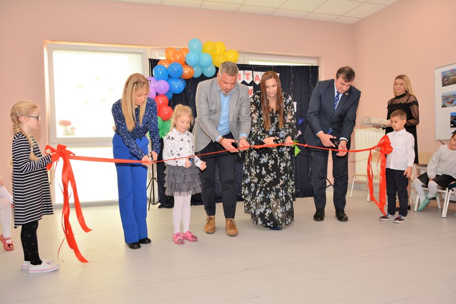 Przedszkolacy przygotowali dla gości część artystyczną, po której nastąpiło przecięcie wstęgi oraz przekazanie prezentów.