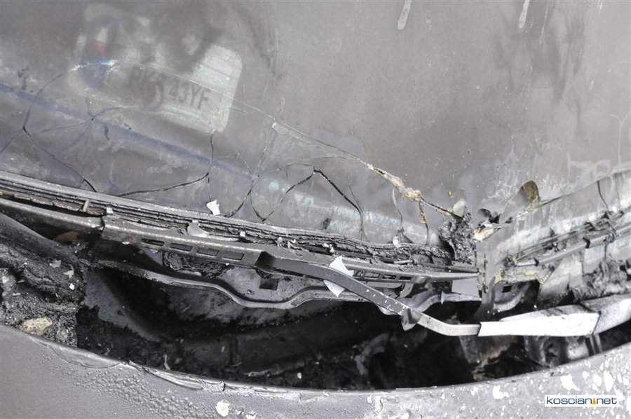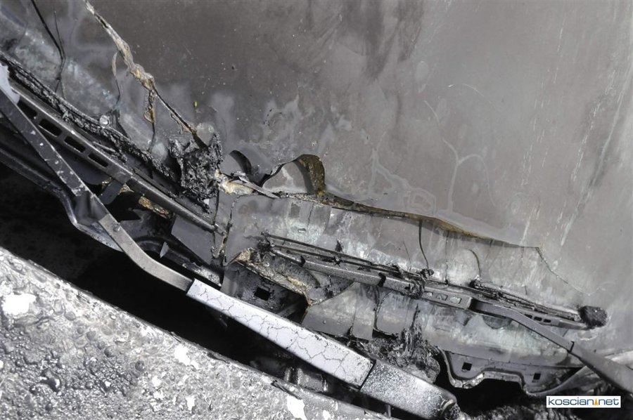 Ogień w komorze silnika ugaszono przed przybyciem straży gaśnicami z kilku samochodów.