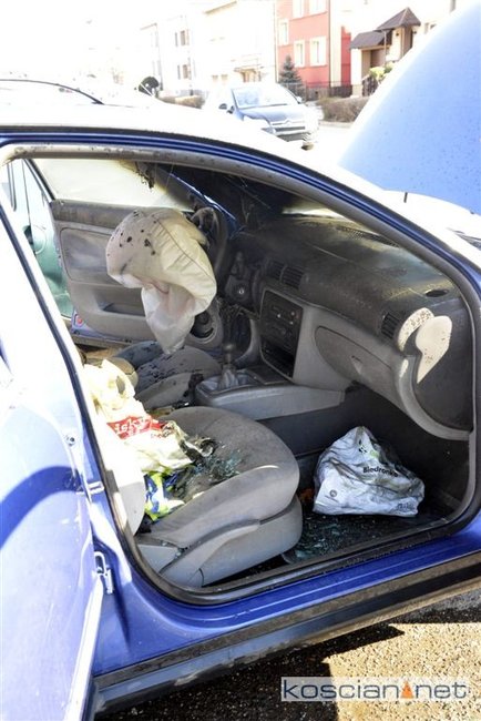 Na ulicy Wyzwolenia w Kościanie zapalił się zaparkowany volkswagen passat.
