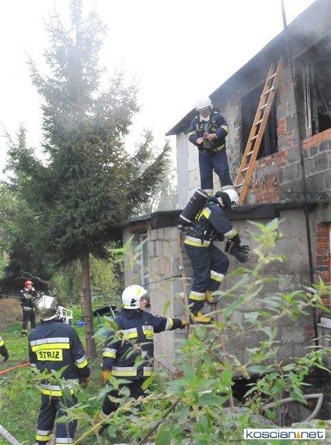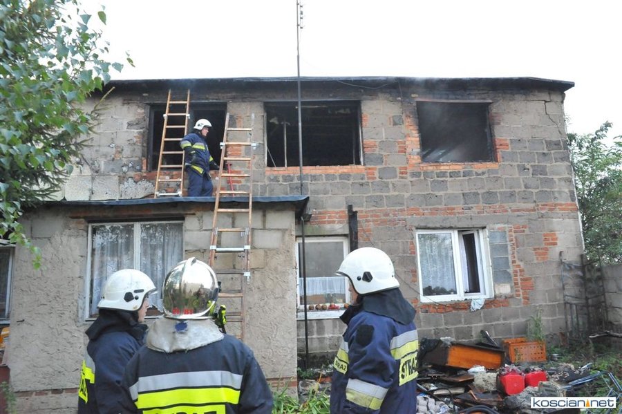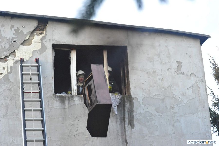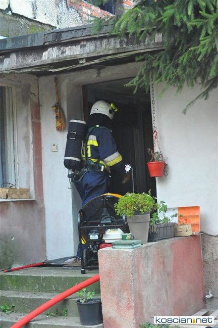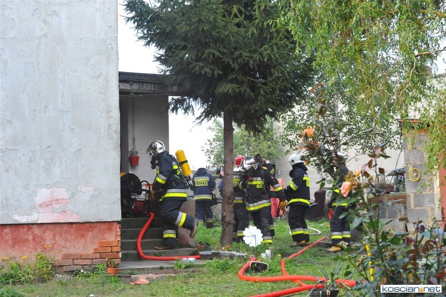 Zgłoszenie o pożarze strażacy odebrali w niedzielę o godz. 17.35. Sześć minut później na miejscu był już pierwszy zastęp. W płonącym budynku były dwie dorosłe osoby. Kobietę ewakuowało dwóch postronnych mężczyzn, a mężczyzna wydostał się o własnych siłach. Obojgu udzielono pomocy. Jednej z osób podano tlen i udzielono wsparcia psychologicznego, drugiej opatrzono ranę nogi.