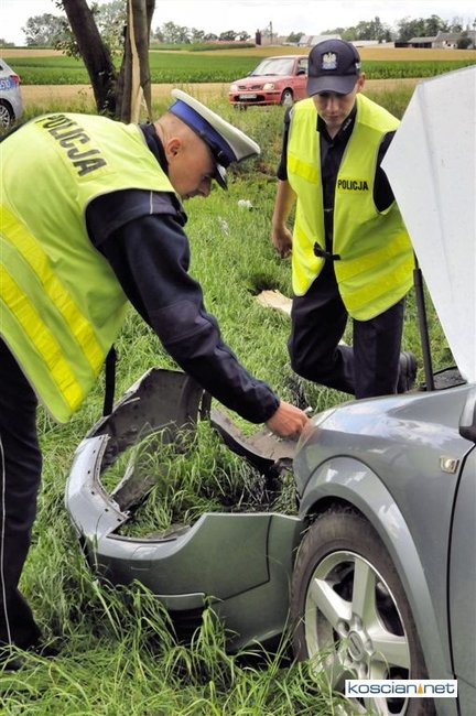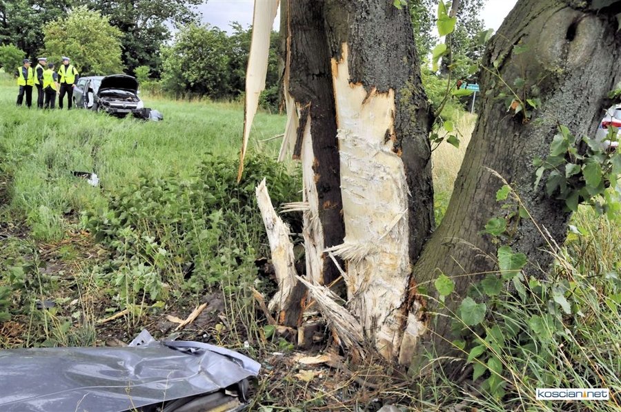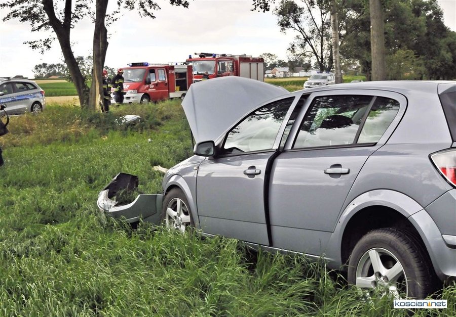 Około godziny 12.30 we wsi Bieczyny (gmina Czempiń) kierująca oplem astra 33-letnia mieszkanka powiatu kościańskiego z nieustalonych przyczyn straciła panowanie nad pojazdem, który zjechał z drogi i uderzył w drzewo. Autem, poza kierującą, podróżowało czworo dzieci w wieku od 2 do 8 lat. Wszystkich uczestników kolizji przewieziono do szpitala na badania.