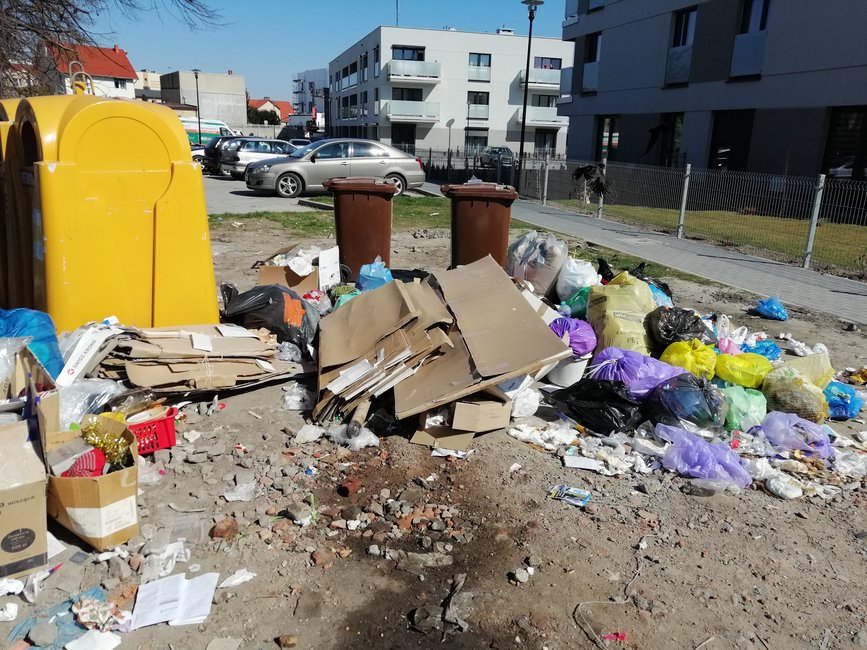 W lutym opisywaliśmy bałagan panujący na nowym osiedlu mieszkaniowym. Obok przepełnionych kontenerów mieszkańcy zostawiali kartony, gruz, butelki, odpady kuchenne.