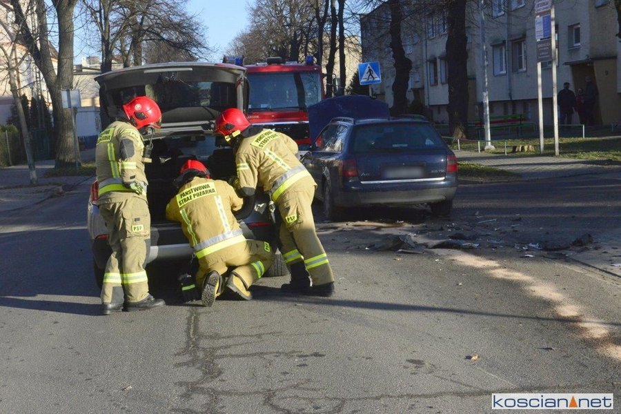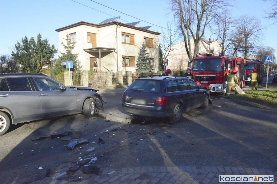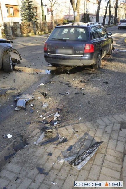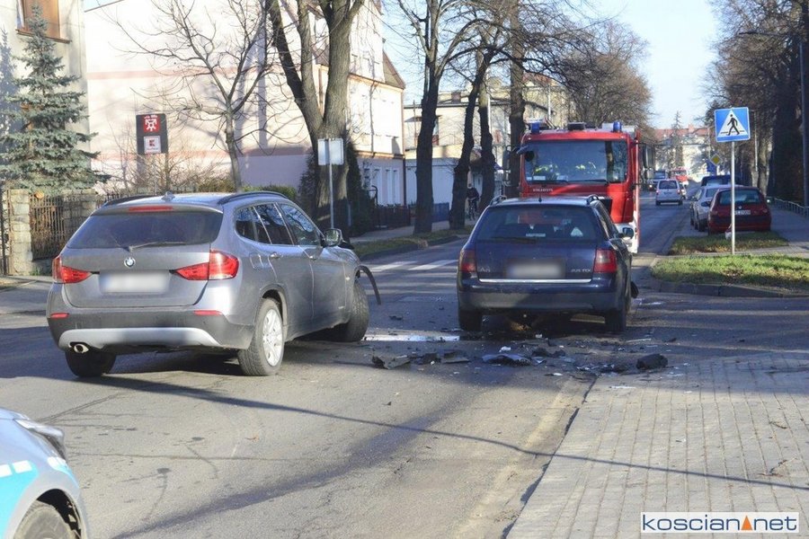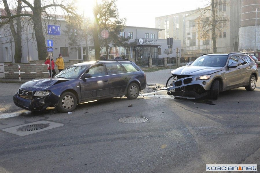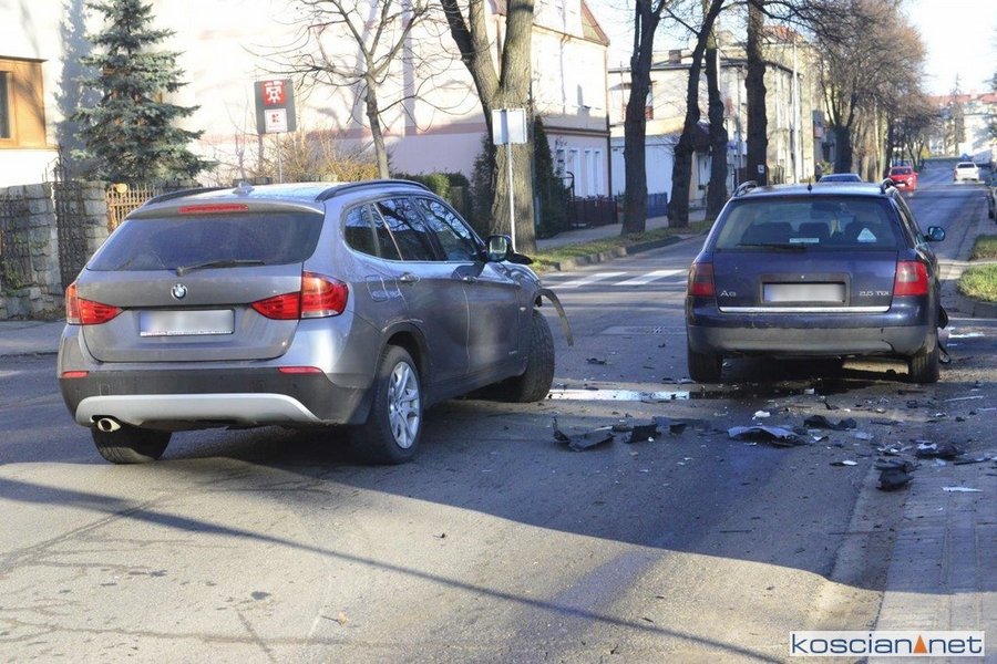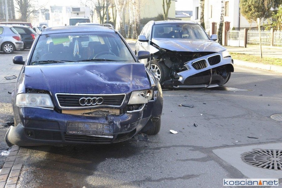 Do zdarzenia doszło w środę, 30 grudnia, około godziny 10.30 na ulicy Nacławskiej w Kościanie. Kobieta kierująca bmw rozpoczynając manewr zawracania doprowadziła do kolizji z prawidłowo jadącym audi. Nie zauważyła nadjeżdżającego pojazdu ponieważ oślepiło ją słońce. Samochodami podróżowało łącznie pięć osób, w tym troje dzieci. Nikomu nic się nie stało. Oba pojazdy zostały uszkodzone.
