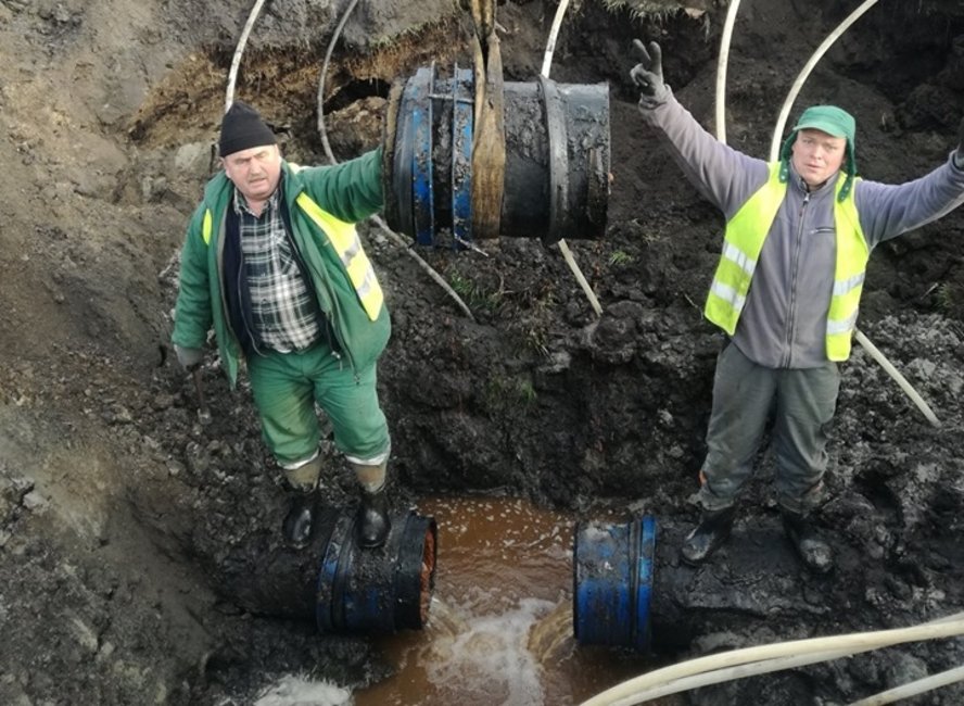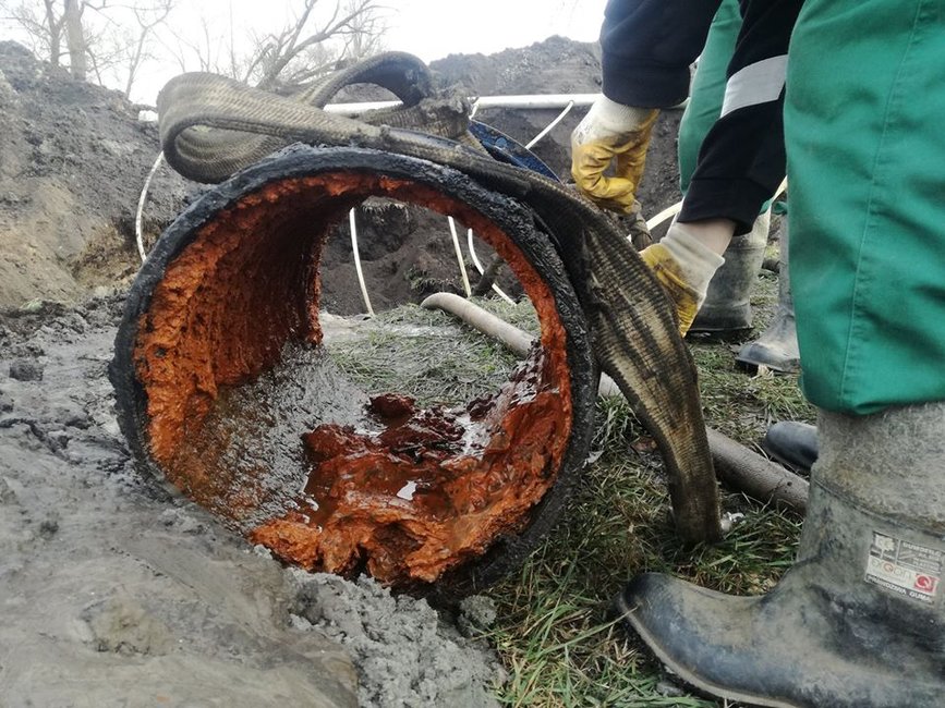 To trzeci rok czyszczenia magistrali, którą woda ze studni dostarczana jest do stacji uzdatniania wody. Surowa woda niesie ze sobą żelazo i mangan, które na stacji uzdatniania są wytracane i usuwane.