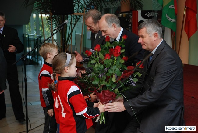 Z gratulacjami pospieszyli też włodarze sąsiednich miast, gmin i powiatów. Były gratulacje, życzenia i upominki (piłki). Poseł Wojciech Ziemniak chwalił gminę Kościan, że jako jedyna w Wielkopolsce wybudowała boiska z różnych programów: w Starym Luboszu boisko wielofunkcyjne, w Starych Oborzyskach ,,Blisko boisko’’, w Racocie ,,Moje boisko – Orlik 2012’’. (kar)
