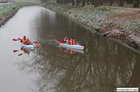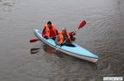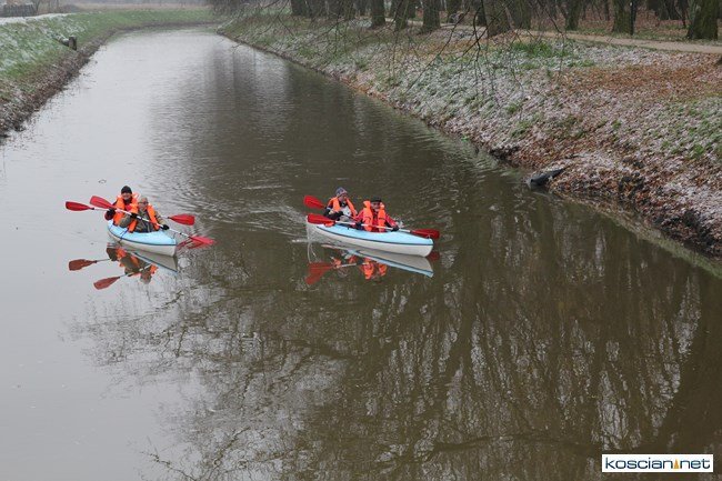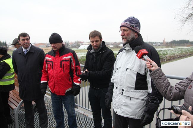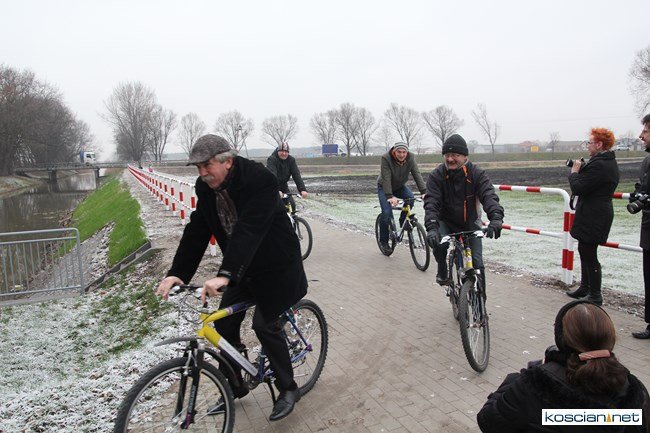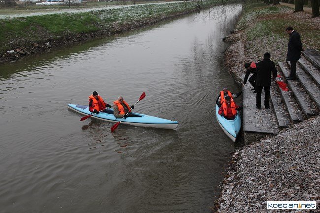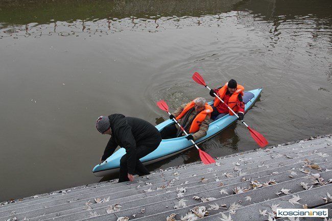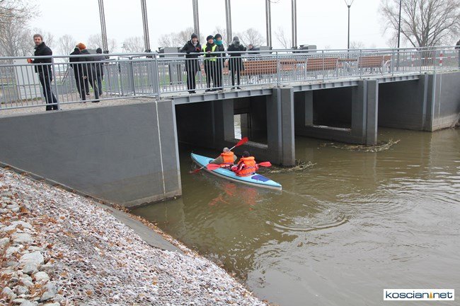 Oficjalnie otwarto jaz i przebiegającą przez niego ścieżkę rowerową łączącą miasto z gminą. Burmistrz Kościana, wójt gminy Kościan i budowniczy jazu przypłynęli na uroczystość kajakami.