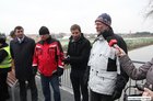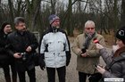 Burmistrz Michał Jurga i wójt Henryk Bartoszewski przypłynęli na konferencję prasową kajakiem, z którego wysiedli na małej przystani przed jazem. Drugi kajak przepłynął pod mostem na śluzie i przybił do kolejnej przystani. Przypłynął nim wicewójt Andrzej Przybyła i Franciszek Halec - dyrektor leszczyńskiego oddziału Wielkopolskiego Zarządu Melioracji i Urządzeń Wodnych. Z kolei od strony Kiełczewa nadjechała grupa rowerzystów na czele z Marietą Szkudlarską wiceprzewodniczącą rady gminy. Chwilę później przecięto symboliczną wstęgę ogłaszając koniec budowy jazu i ścieżki rowerowej.