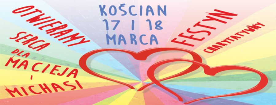 Wielką akcję charytatywną, na którą złożą się różnorodne działania, zaplanowano na trzeci weekend marca. Wydarzenie rozpocznie piątkowa impreza sportowa, a zakończy niedzielny koncert. Program imprezy, której rozmach rośnie z dnia na dzień, poznamy w przyszłym tygodniu. Beneficjentami przygotowywanej akcji będą: Maciej Zielonka i Michasia Zarzycka - nauczyciel i uczennica kościańskiej „czwórki”.