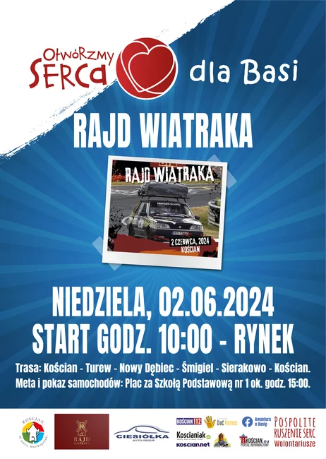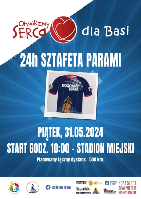 Akcja „Otwórzmy Serca dla Basi” odbędzie się w piątek, 31 maja oraz w niedzielę, 2 czerwca. W piątek rozpocznie się 24 godzinny bieg na kościańskim stadionie, któremu towarzyszyć będzie wiele atrakcji, a na niedzielę planowany jest rajd samochodowy i motocyklowy oraz koncerty w parku KOK. Do tego festyny, licytacje, loterie.