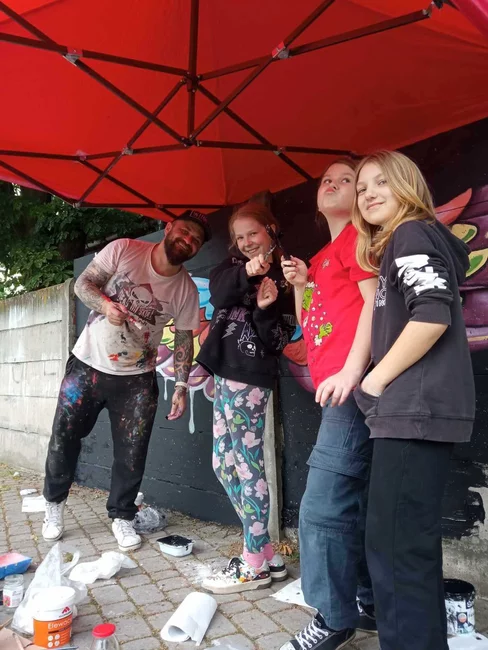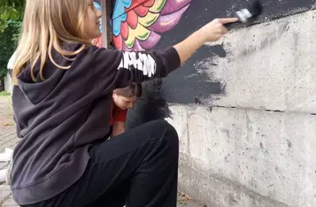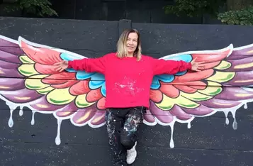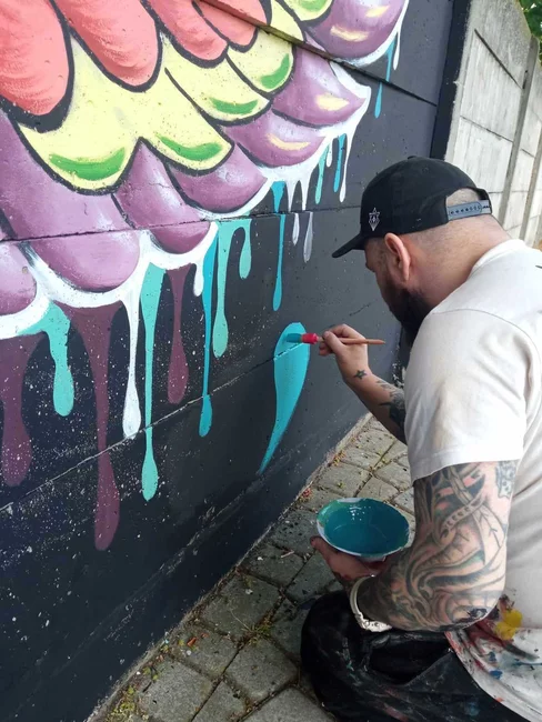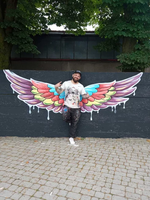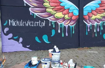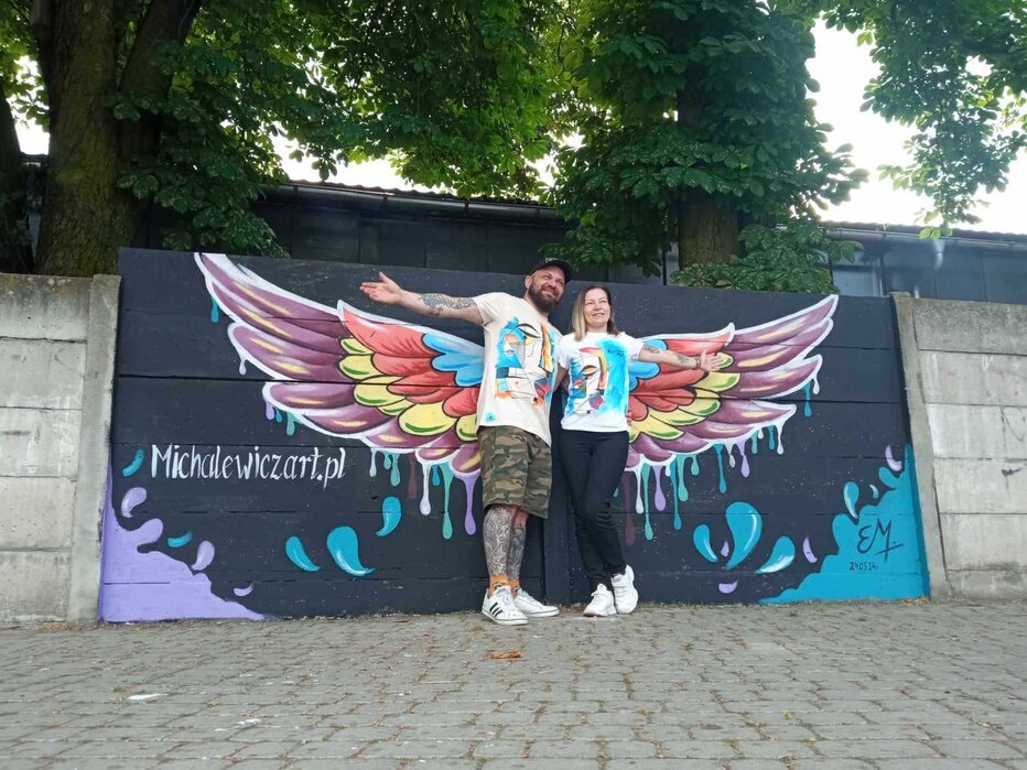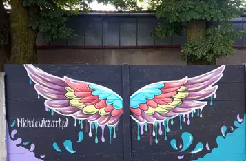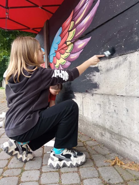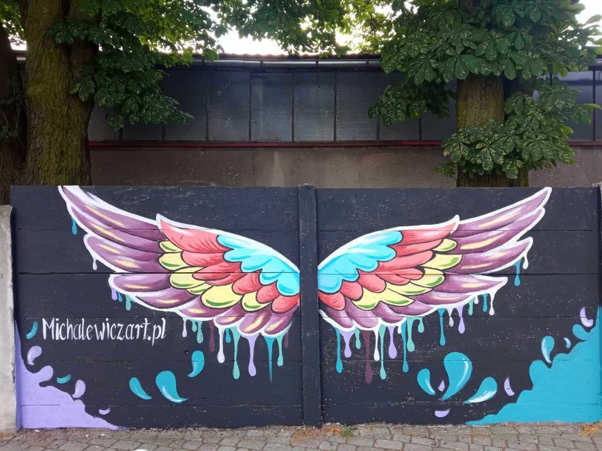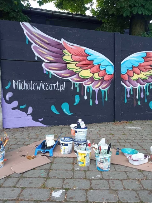 W dwa dni, małżeństwo kościańskich artystów Ewa i Marcin Michalewicz namalowali na płocie oddzielającym KOK od strzelnicy LOK-u kolorowe skrzydła. W tworzeniu pomagały im trzy, szkolące się u nich dziewczyny.