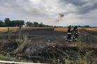 Dziesięć zastępów straży pożarnej walczyło z pożarem na polu zboża w pobliżu Bonikowa.