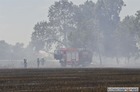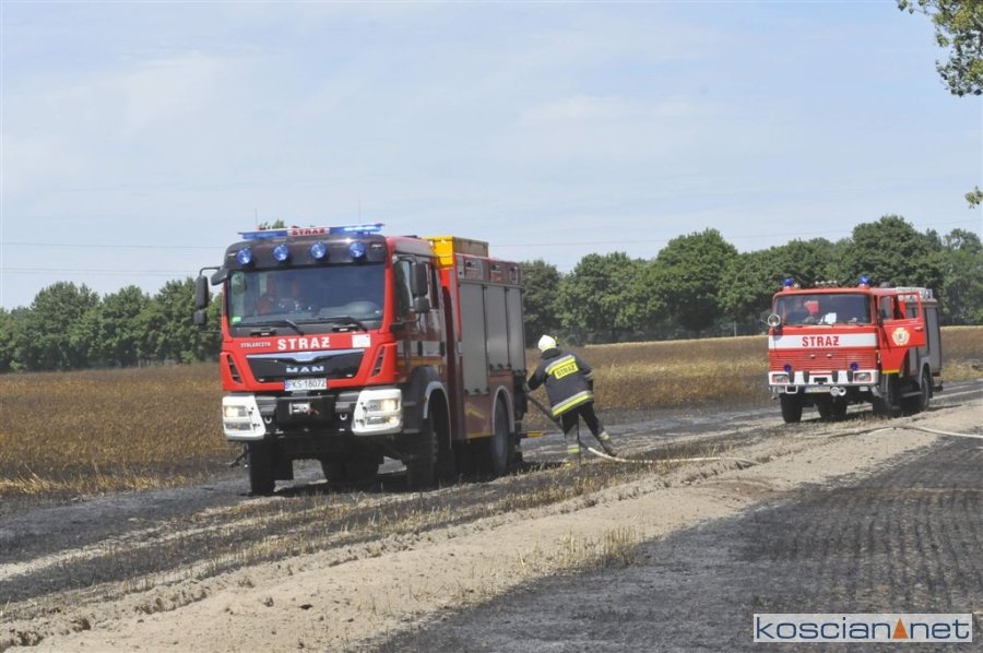Strażacy z powiatów: kościańskiego, śremskiego i poznańskiego gasili pożar, który objął 25 hektarów pola.