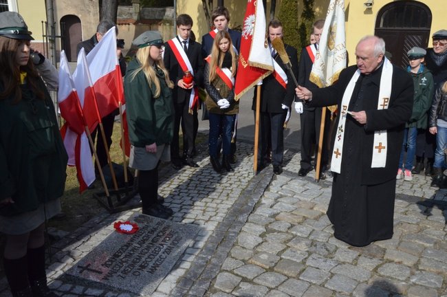 Na placu Niezłomnych w Kościanie poświęcono dziś wykonaną z inicjatywy władz Powiatu Kościańskiego tablicę upamiętniającą Żołnierzy Wyklętych.