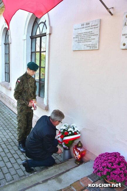 Organizator zainicjował łańcuch pamięci pokoleń składając wiązankę z wnukiem Dawidem, uczniem szkoły kadetów ze Śremu. Uroczystość zakończyła salwa honorowa z moździerza. (zk)