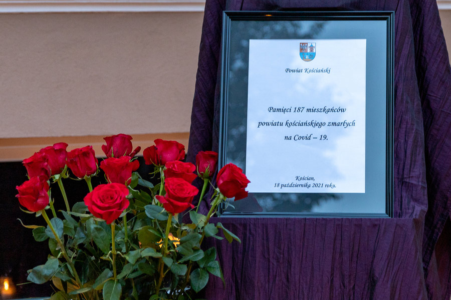 Z inicjatywy Zarządu Powiatu Kościańskiego przed starostwem odbyła się krótka uroczystość upamiętnienia osób, które zmarły z powodu Covid-19. Wzięli w niej udział mieszkańcy i samorządowcy. Samorząd powiatowy reprezentowali: Iwona Berszyńska, Przewodnicząca Rady Powiatu Kościańskiego oraz radni Aleksander Sowa i Mirosław Kaczmarek. Samorząd Kościana reprezentował wiceburmistrz Przemysław Korbik.
