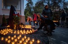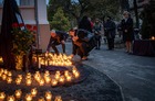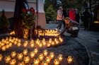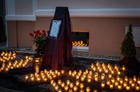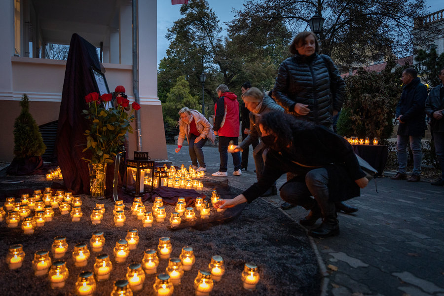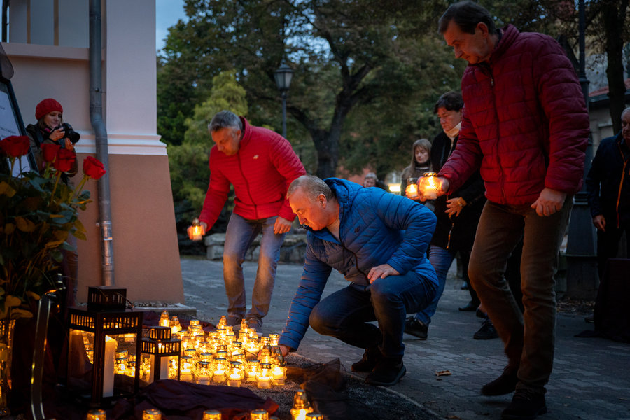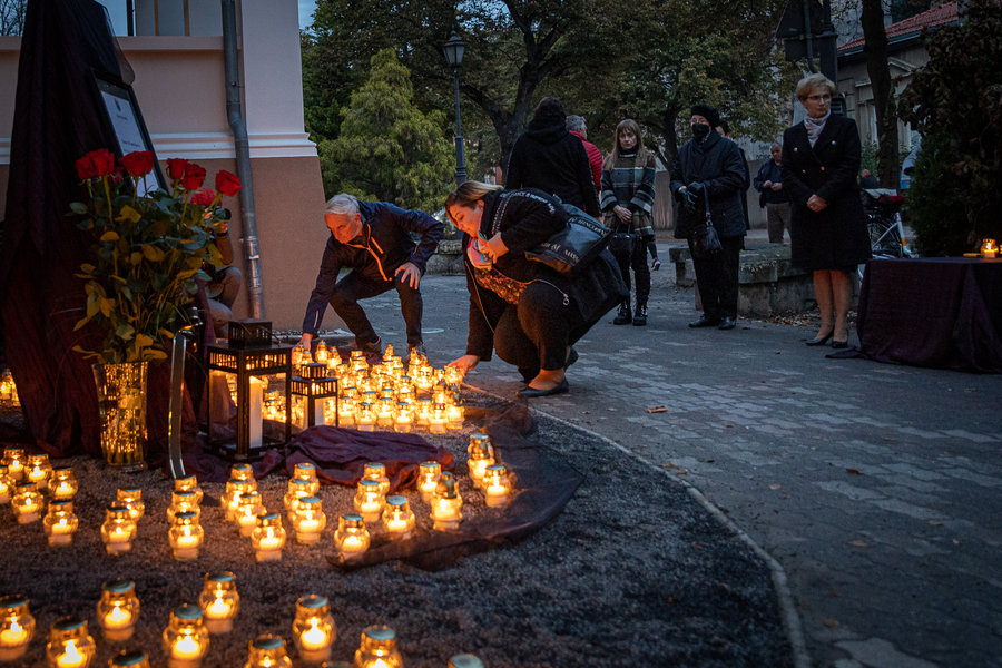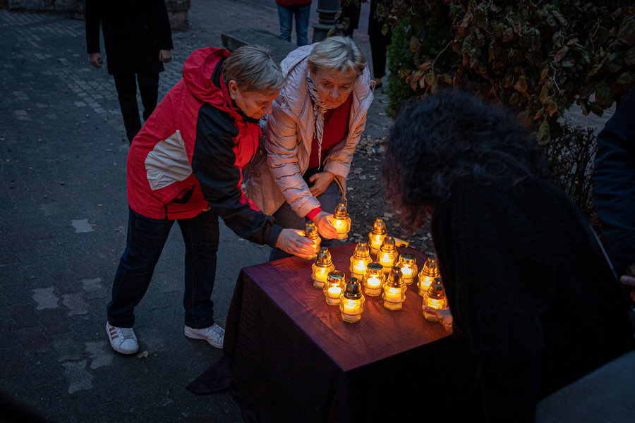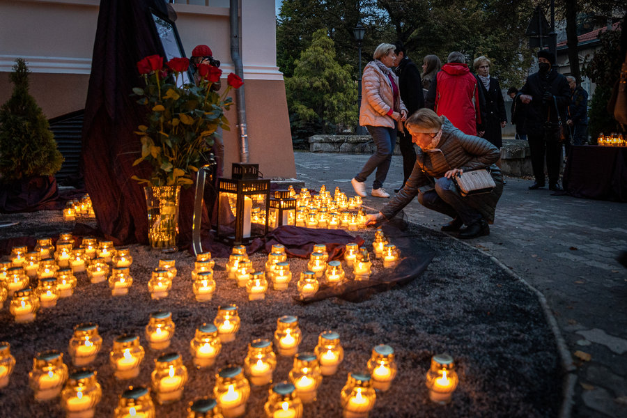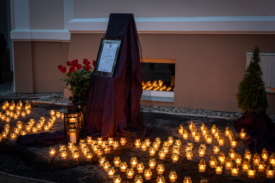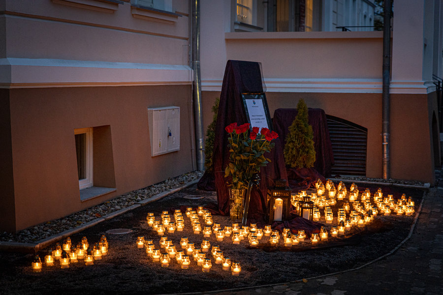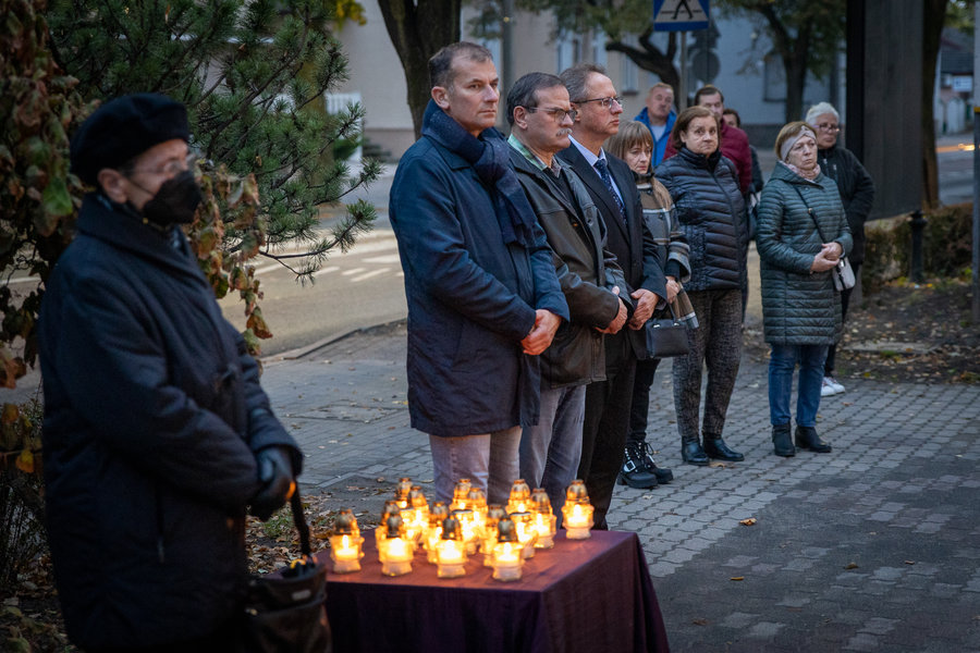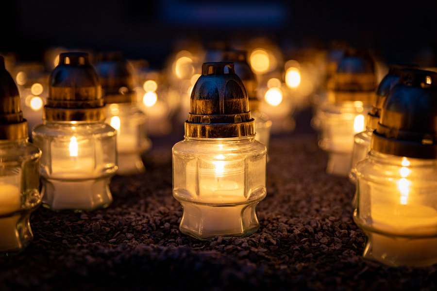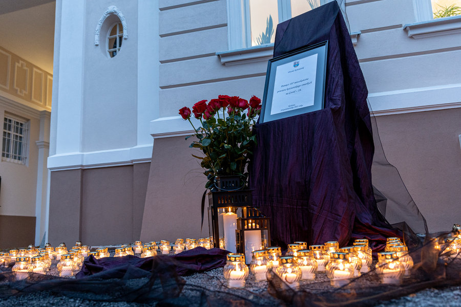 W rocznicę śmierci pierwszej w powiecie ofiary koronawirusa przed starostwem zapalono 187 zniczy, po jednym dla każdego mieszkańca powiatu zmarłego z powodu Covid-19.