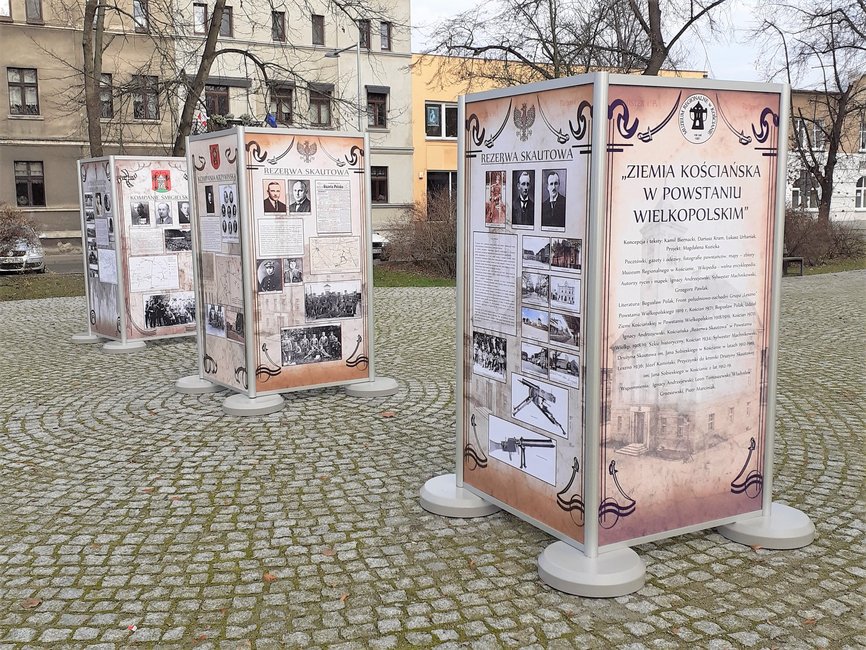 Wystawa stanęła na placu 18 grudnia. Tego dnia, 102 lata temu, utworzono w Kościanie oddział pod nazwą ,,Rezerwa Skautowa’’, który w brawurowy sposób oswobodził miasto w noc z 29 na 30 grudnia 1918 roku.