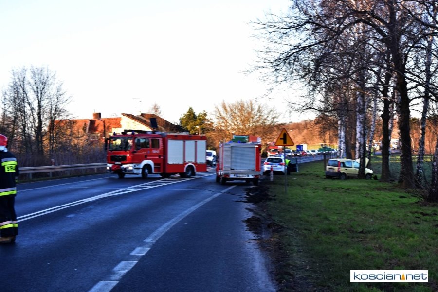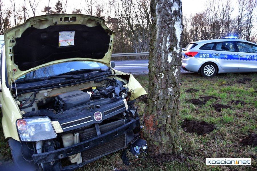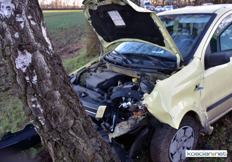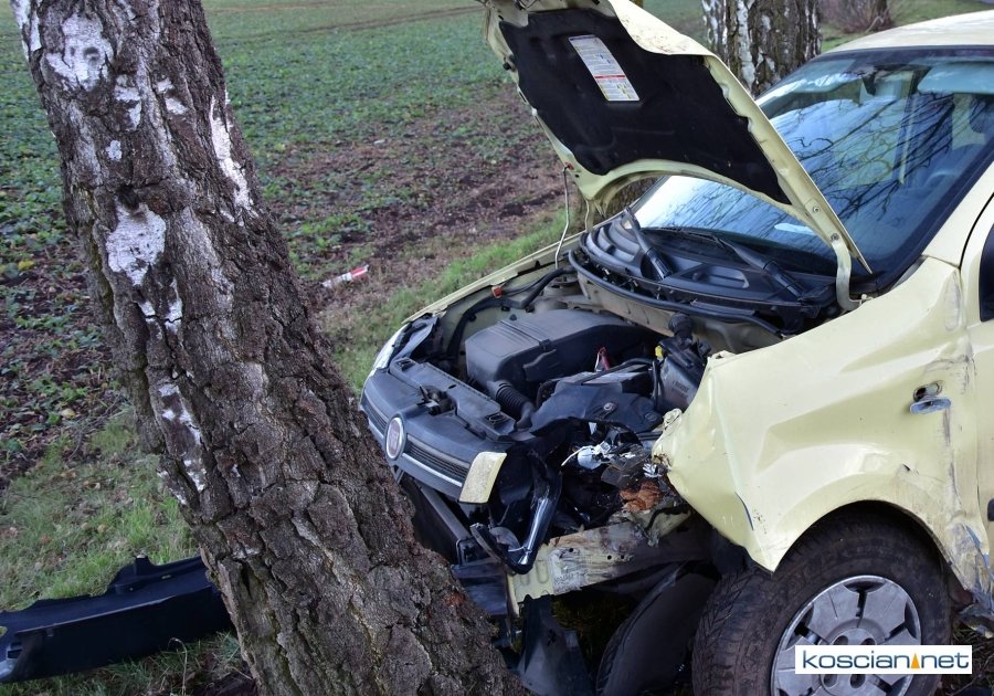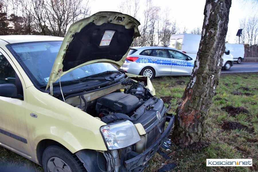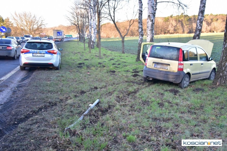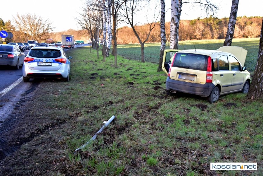 Do kolizji doszło około godziny 14. na drodze krajowej nr 5 w Piotrowie Pierwszym. Kierująca fiatem panda, 59-letnia mieszkanka powiatu poznańskiego, nie dostosowała prędkości do panujących warunków i straciła panowanie nad pojazdem. Auto zjechała na prawo, ścięło znak drogowy i uderzyło w brzozę. Kierująca nie odniosła poważniejszych obrażeń. Sprawczynię kolizji ukarano mandatem.