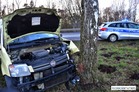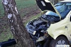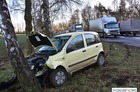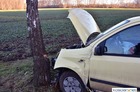 Kolizja na krajowej „piątce”. Fiat panda uderzył w przydrożne drzewo.