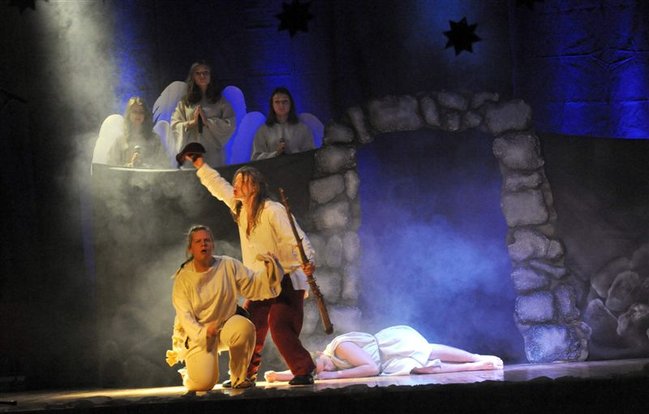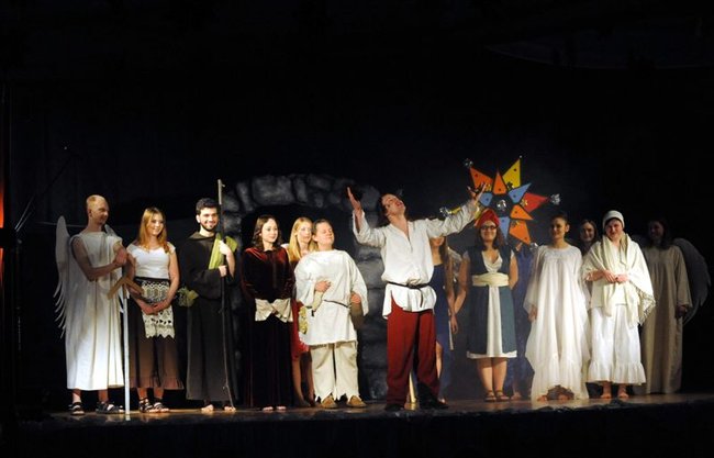 Była to opowieść o Świętej Rodzinie z udziałem aniołów, diabłów, Heroda, Trzech Króli i wielu innych biblijnych postaci. Boże Narodzenie z przymrużeniem oka przedstawił Teatr Anakonda z Leszna. Na scenie pojawiło się siedemnastu aktorów. Spektakl wyreżyserowała Ewa Halatyn.