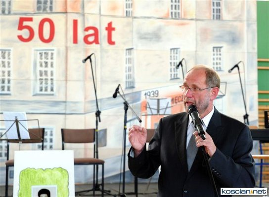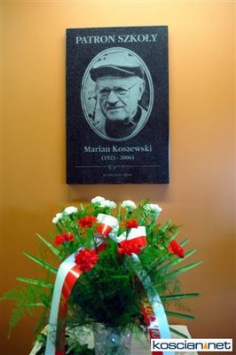 Zespół Szkół nr 4 w Kościanie uroczyście obchodził dziś 50-lecie powstania ,,czwórki''. Tego dnia odsłonięto tablicę nowego patrona szkoły: Mariana Koszewskiego. Patrona niezwykłego, odmiennego od większości patronów szkół w Polsce. Wzorem dla uczniów nie jest znana powszechnie postać historyczna, lecz zwykły porządny człowiek z sąsiedztwa.