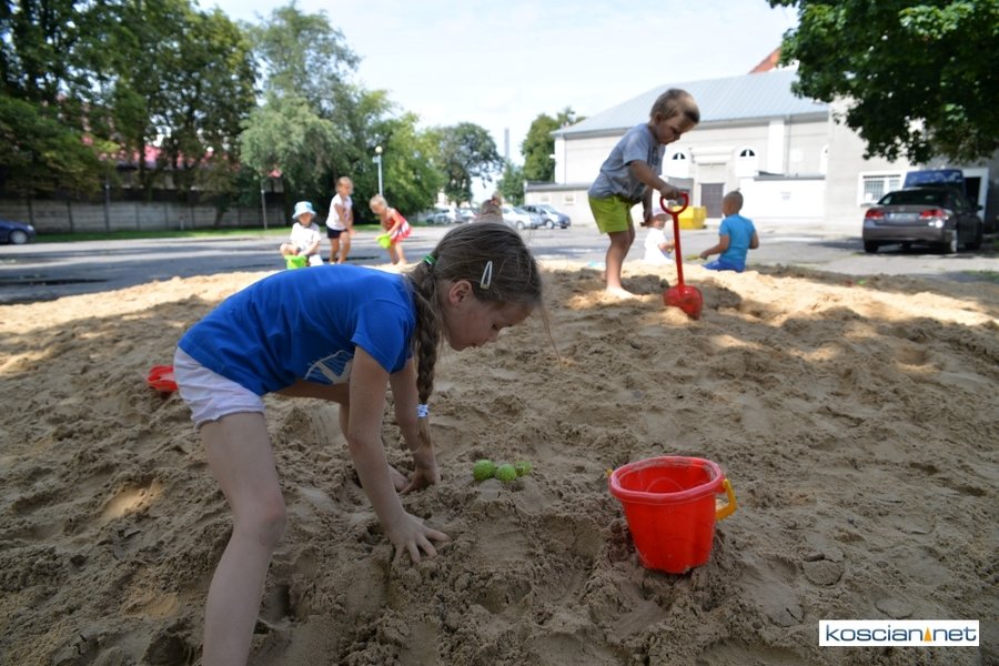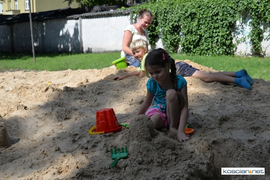 Z 25 ton piasku w parku Kościańskiego Ośrodka Kultury usypano największą piaskownicę w mieście.