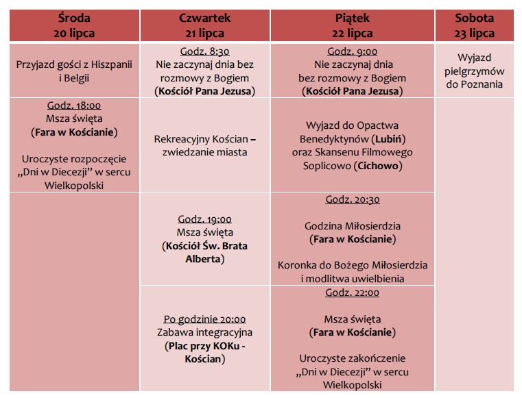 Poniżej program pobytu pielgrzymów w Kościanie i Śmiglu.