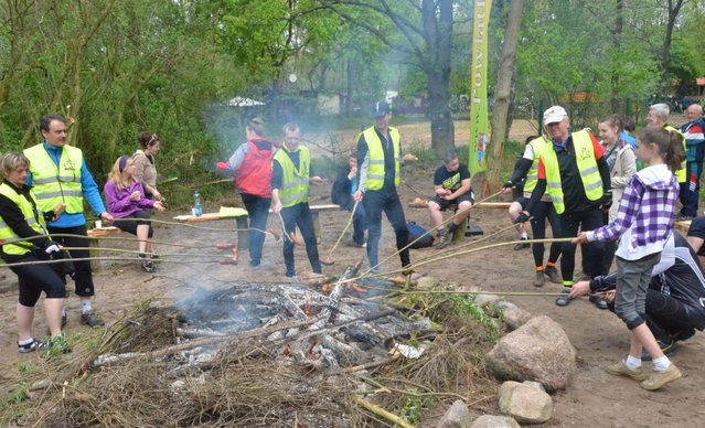 Na wszystkich, którzy pokonali pierwszą z „Romantycznych Tras Rowerowych Ziemi czekała na mecie grochówka i ognisko, na którym można było upiec kiełbaski.