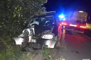 Kierujący volkswagenem, 20-letni kierowca, zjechał z drogi i uderzył w drzewo. Był pijany.
