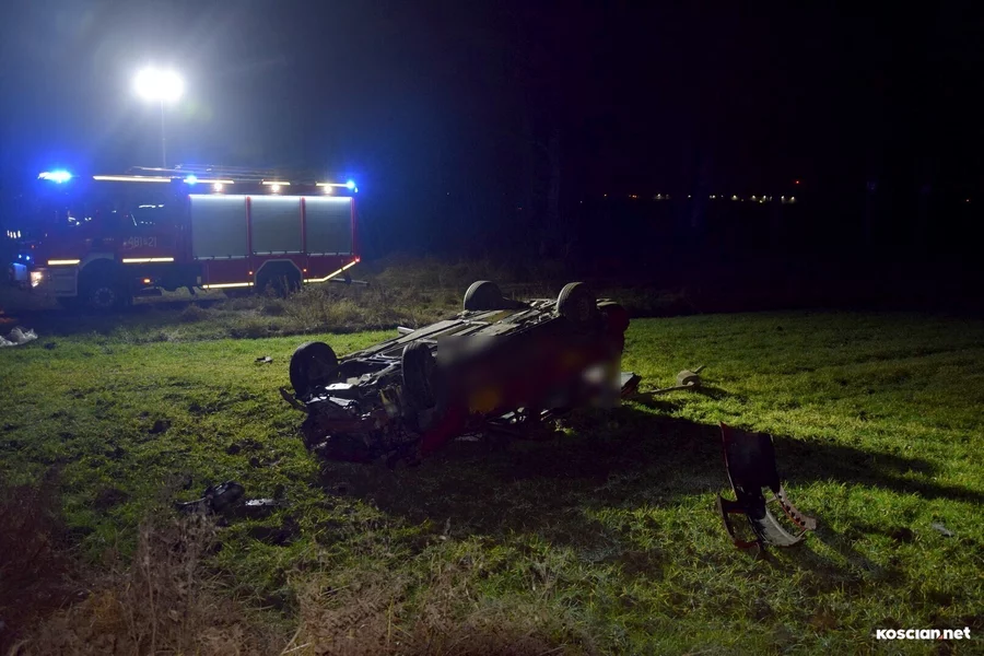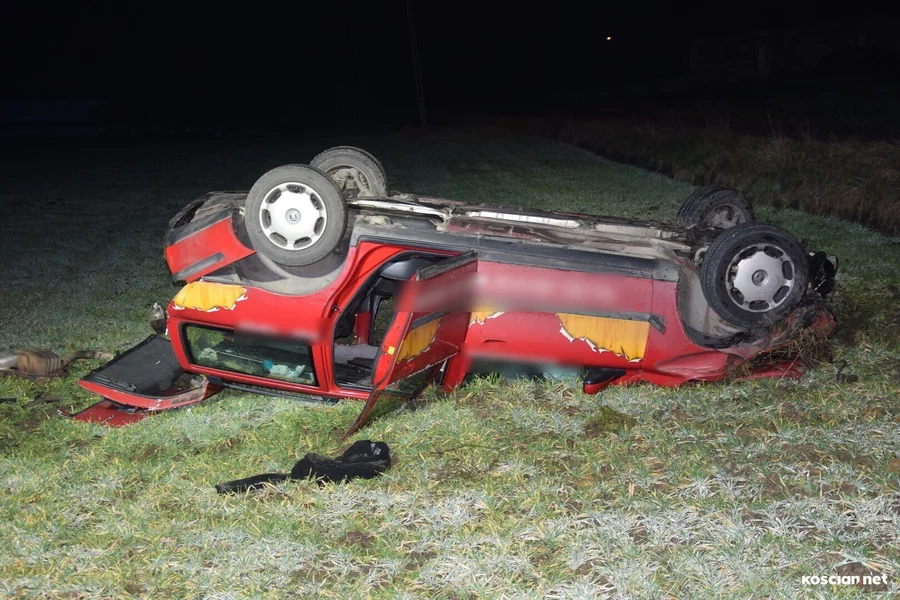 Kierujący samochodem marki Volvo , 19-letni mieszkaniec gminy Kościan, na łuku drogi stracił panowanie nad pojazdem, zjechał z jezdni, a następnie dachował. W wyniku zdarzenia, 17-letnia pasażerka z gminy Lipno została poważnie ranna i ze złamaniami została zabrana do szpitala. Kierowca miał 1,47 promila alkoholu w organizmie – informuje Jarosław Lemański, oficer prasowy Komendy Powiatowej Policji w Kościanie.