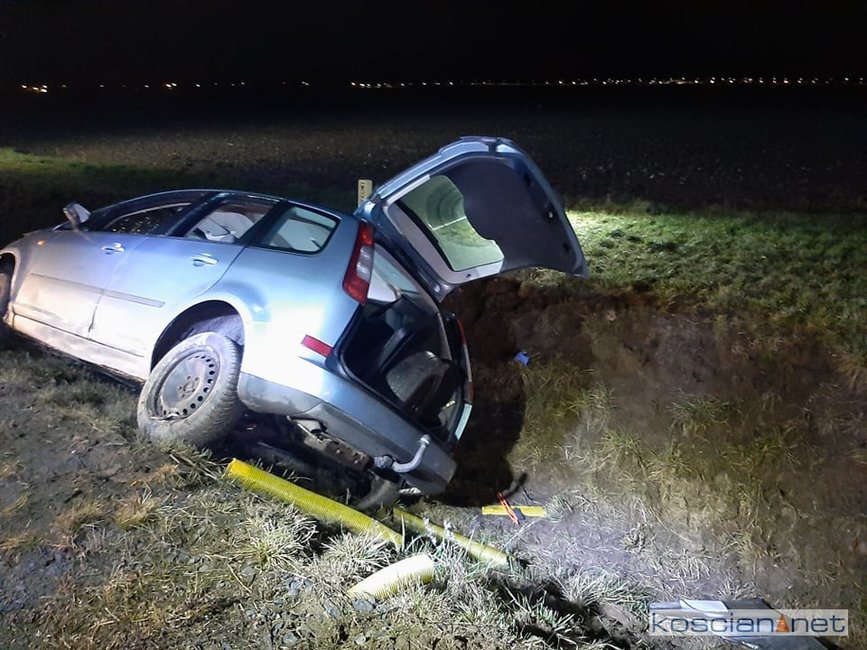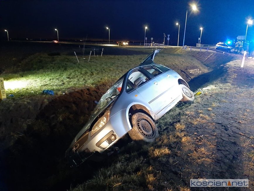 Do kolizji doszło we wrotek, 30 listopada, około godzimy 21.40 w okolicy ronda łączącego obwodnicę Kościana z drogą 308. Kierujący fordem c-max 52-latek stracił panowanie nad samochodem, uderzył w znak drogowy i zjechał do rowu.