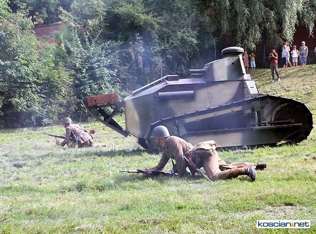 Rekonstruktorzy zaprezentowali współdziałanie piechoty z wozami bojowymi, demonstrowali obsługę wszystkich prezentowanych rodzajów broni oraz uczyli walki na bagnety.