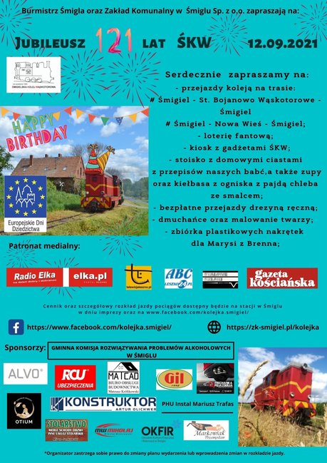 W najbliższą niedzielę, 12 września, odbędzie się piknik z okazji 121. rocznicy powstania Śmigielskiej Kolejki Wąskotorowej.