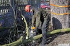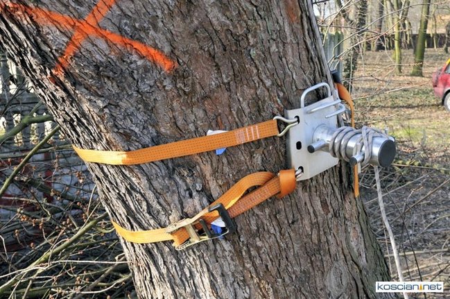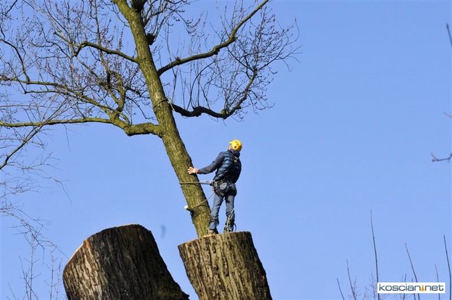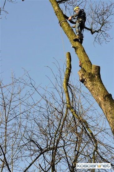Wyjątkowym wyzwaniem są prace w Parku Miejskim im. Kajetana Morawskiego. Wyciętych drzew tam nie można ,,położyć'', a na alejki spacerowe nie można wjechać ciężkimi maszynami. Tu trzeba alpinistycznych umiejętności i odpowiedniego sprzętu. Wyciętych tak ma być dziesięć drzew: dziewięć klonów srebrzystych nad kanałem Obry (są opanowane przez grzyby powodujące zgniliznę drewna) i jeden kasztanowiec przy punkcie widokowym. Na zdjęciach uwieczniliśmy pracujących w parku alpinistów przemysłowych.