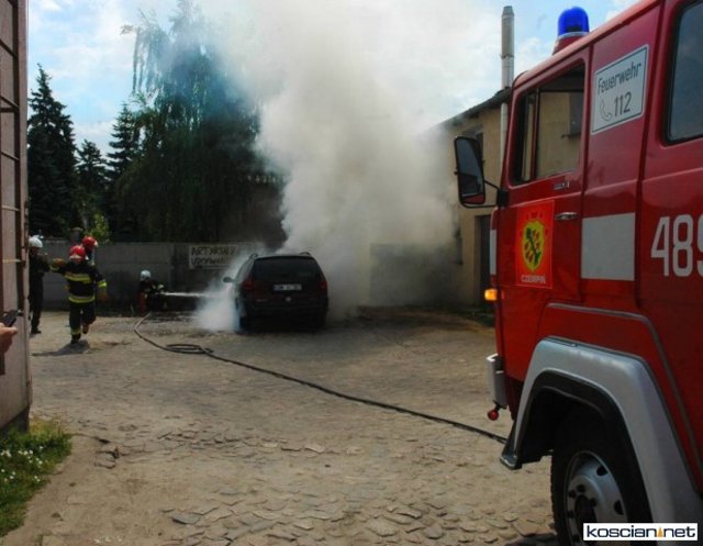 Wczoraj, w godzinach południowych, dwa zastępy straży pożarnej z Czempinia i Kościana gasiły samochód osobowy Renault Laguna , który zapalił się na parkingu sklepów w pobliżu urzędu gminy.
