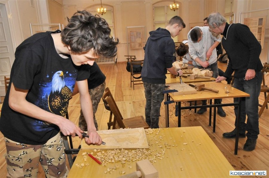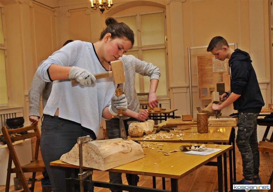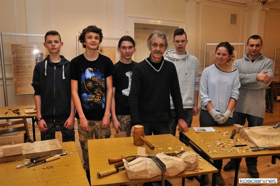 W kościańskim muzeum trwają pięciodniowe warsztaty rzeźbiarskie prowadzone przez Mariana Malińskiego.