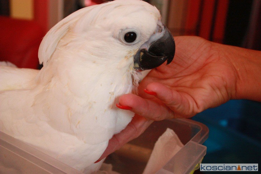 - ...co niczego jeszcze nie gwarantuje, ale zaczyna się coś dziać – kontynuuje pan Bartłomiej. - Taka kakadu żółtolica abbotti. W naturze zostało ich zaledwie 20 sztuk. Żyją na jednej z wysp Indonezji. I ja mam 4 pary! Jedna już kiedyś miała młode, a u mnie są już trzy lata i nic. Ani jajka. Nie wiadomo co się stało. Zmienić im budkę, wolierę?