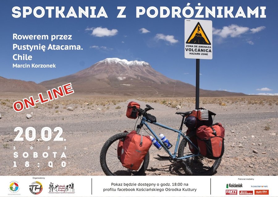 20 lutego, o godz. 18, na facebookowym profilu KOK będzie można posłuchać opowieści Marcina Korzonka – zapalonego rowerzysty, dziennikarza i fotografa, który opowie o wyprawie do Chile. Prelekcja będzie zatytułowana ,,Rowerem po andyjskich wulkanach w Chile’’.